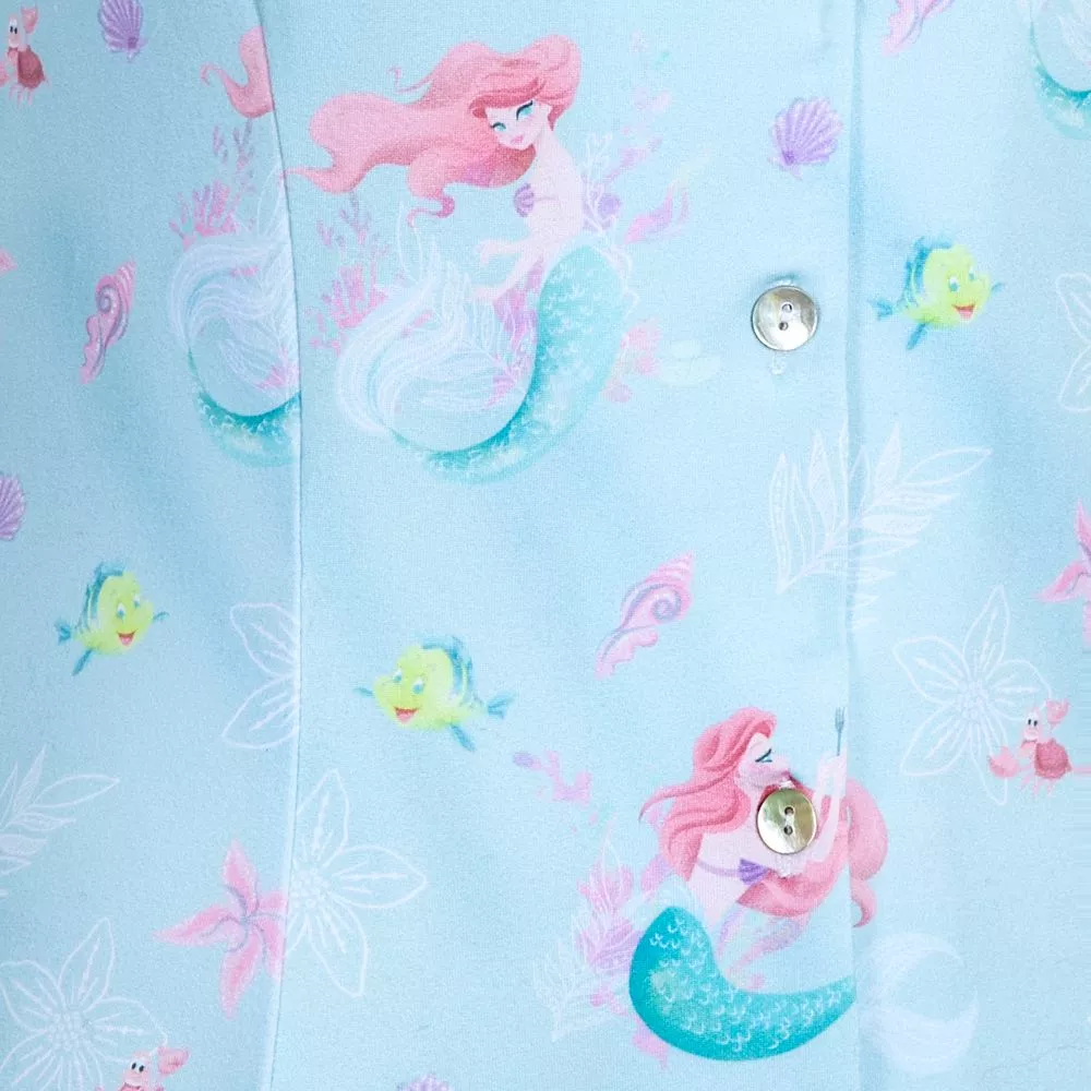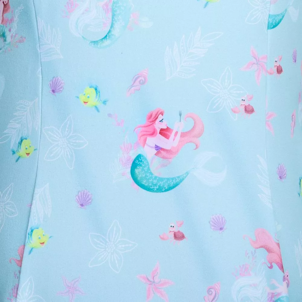 Get in the swim and swing of spring with this Ariel swing dress. Featuring an allover stylized pattern starring Ariel, Flounder and Sebastian, it has pearlescent buttons down the front, a lovely scoop neckline, a flattering bodice and swing hem. Inspired by Disney’s animated The Little Mermaid, it’s sure to prompt a twirl (or two) every time you put it on.