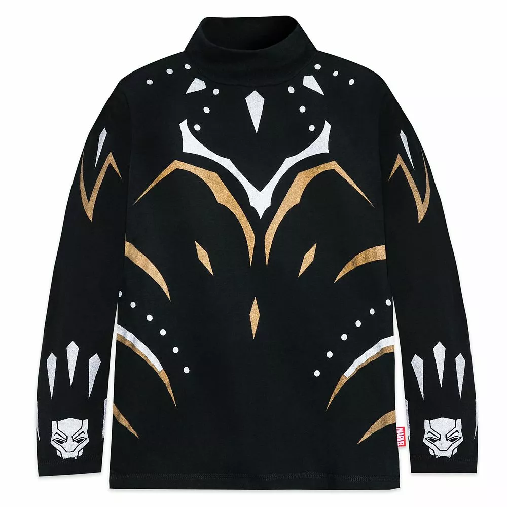 Adventure begins the moment they put on this Black Panther costume top. Inspired by Black Panther: Wakanda Forever, the long sleeve jersey top is designed to look like the iconic uniform with metallic print and Black Panther icons. It is just the thing that transforms Wakanda’s bravest into its greatest hero.