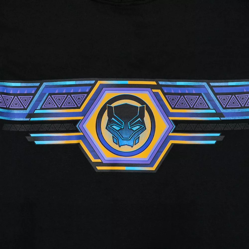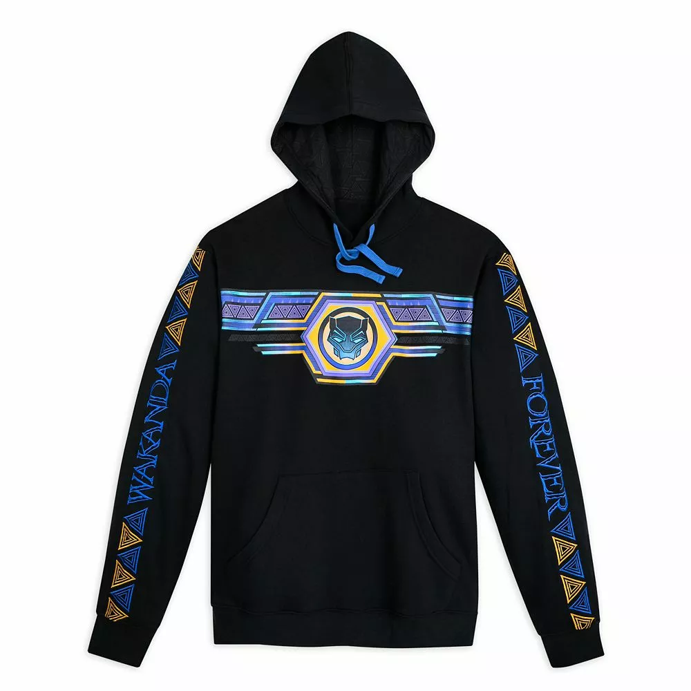 Salute the heroic life of King T’Challa, a.k.a. Black Panther, in this enhanced hoodie with embroidered ”Wakanda Forever” logo and decoration on the sleeves.