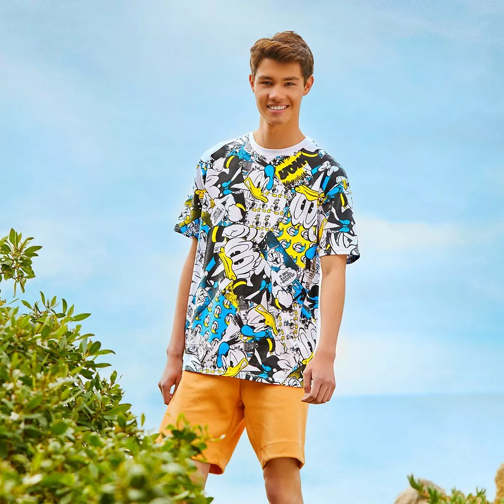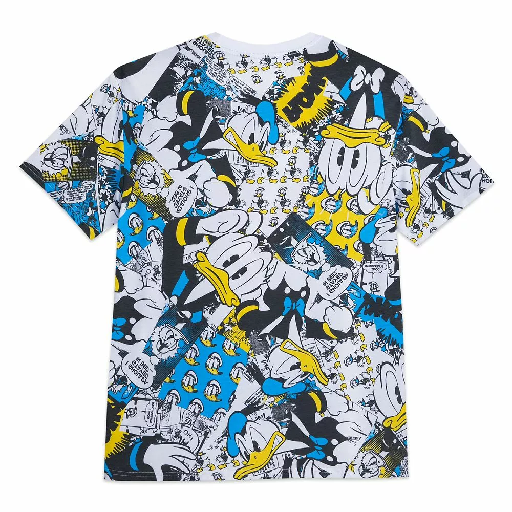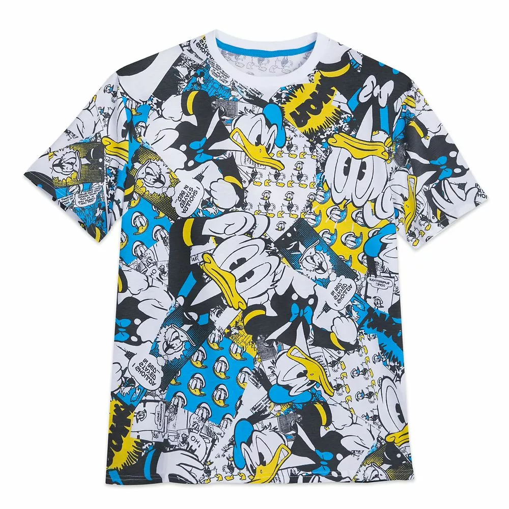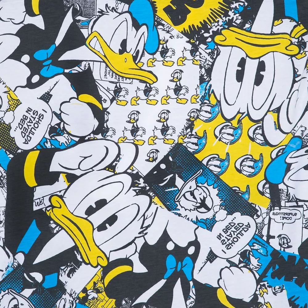 Donald Duck fans will go quackers for this tee featuring a bold allover print showing the expressive duck in a variety of moods . . . most of them bad.