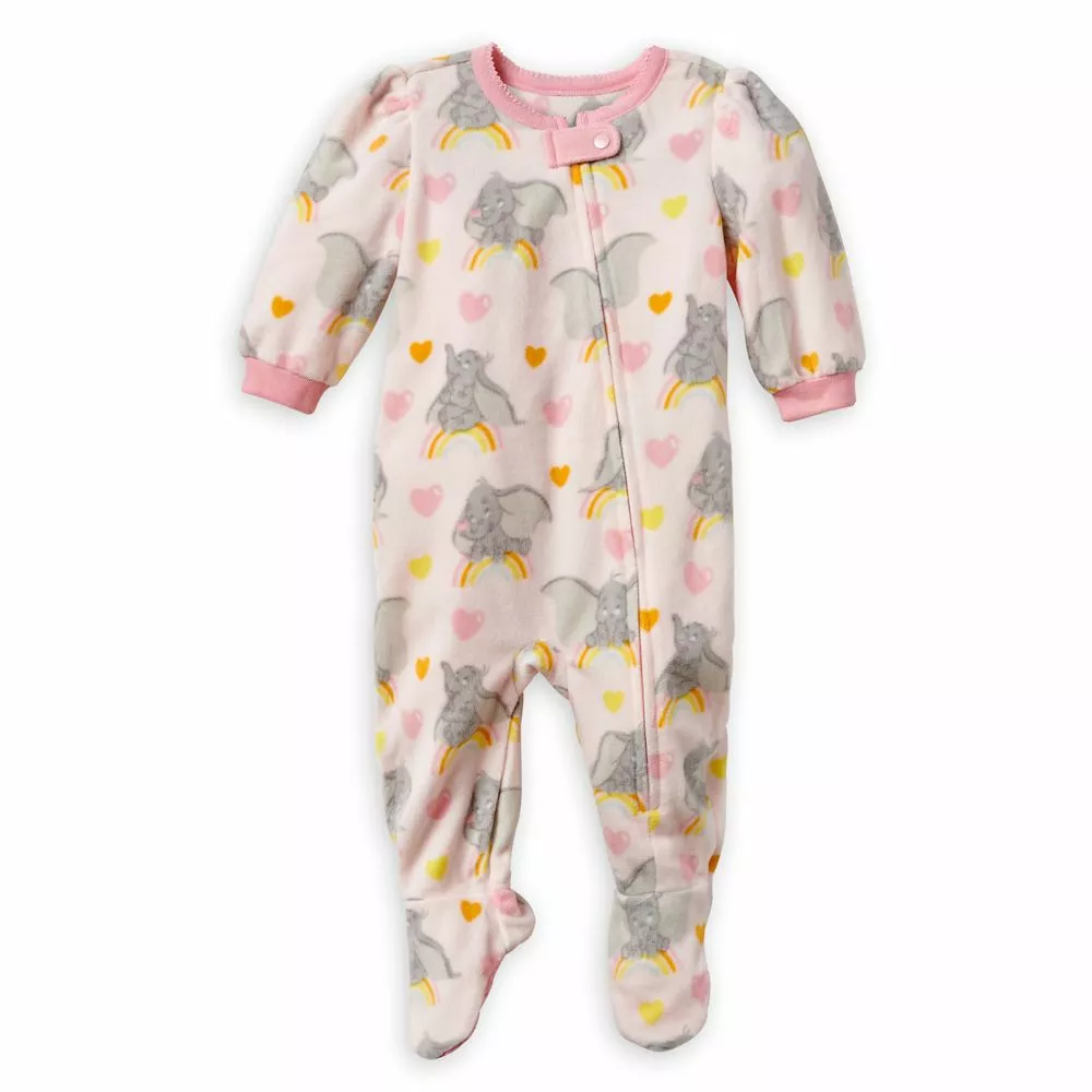 Your little one will slumber peacefully in this cozy sleeper. Featuring an allover print of Dumbo with hearts and rainbows in polar fleece fabrication, this one-piece will keep your baby all warm and snuggly.