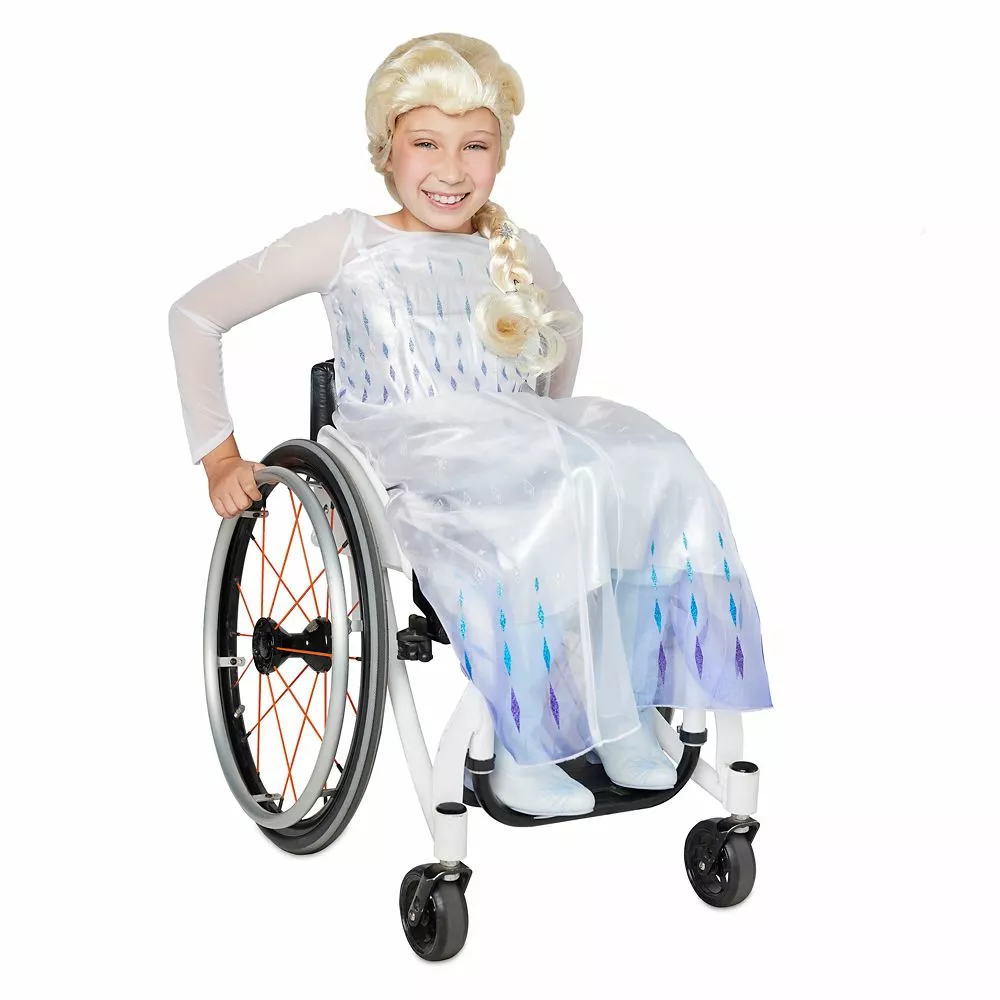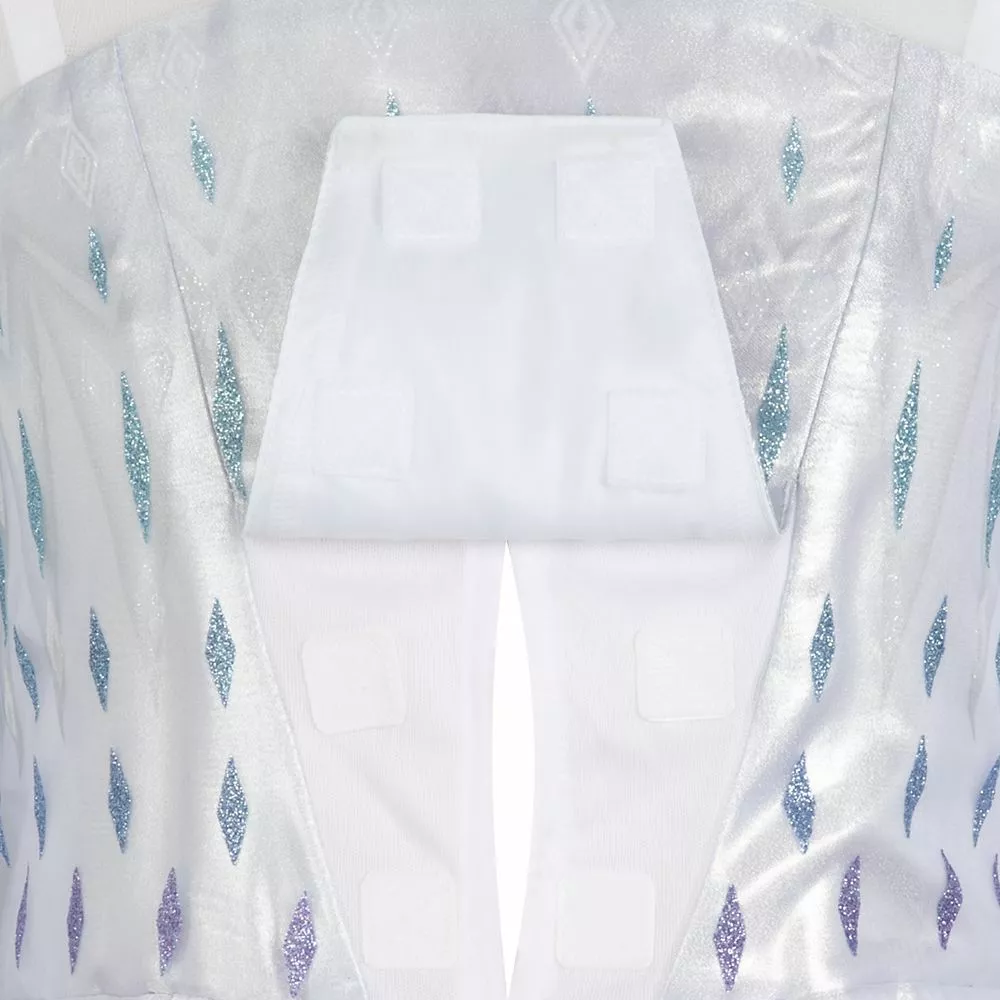 All hail the snow queen in this adaptive Elsa costume, which features openings at the back and a discreet flap in the front center for easy tube access. Let imagination go in our shimmering gown with sheer sleeves and icy, glittering details.
