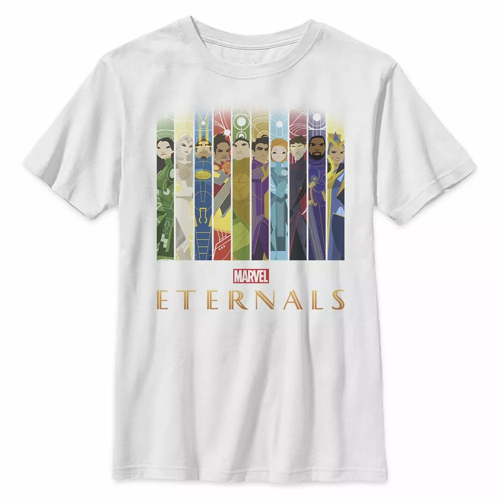 Together they are stronger! All their favorite Eternals are featured across this colorful panel t-shirt with striking animation art styling that is perfect for fans of the Eternals film!