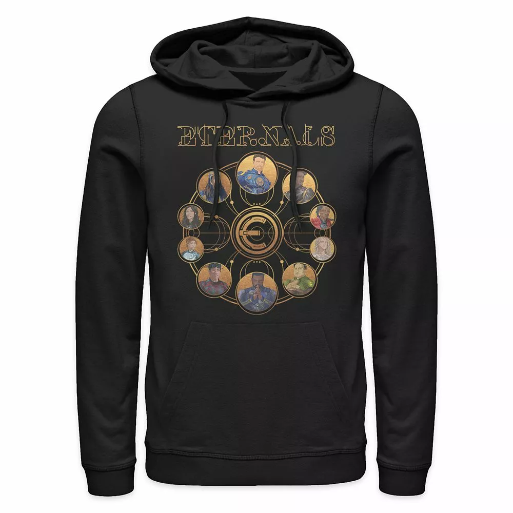 All of your favorite Eternals adorn this elegant pullover hoodie with golden design accents and lettering. It will keep you warm forevermore!