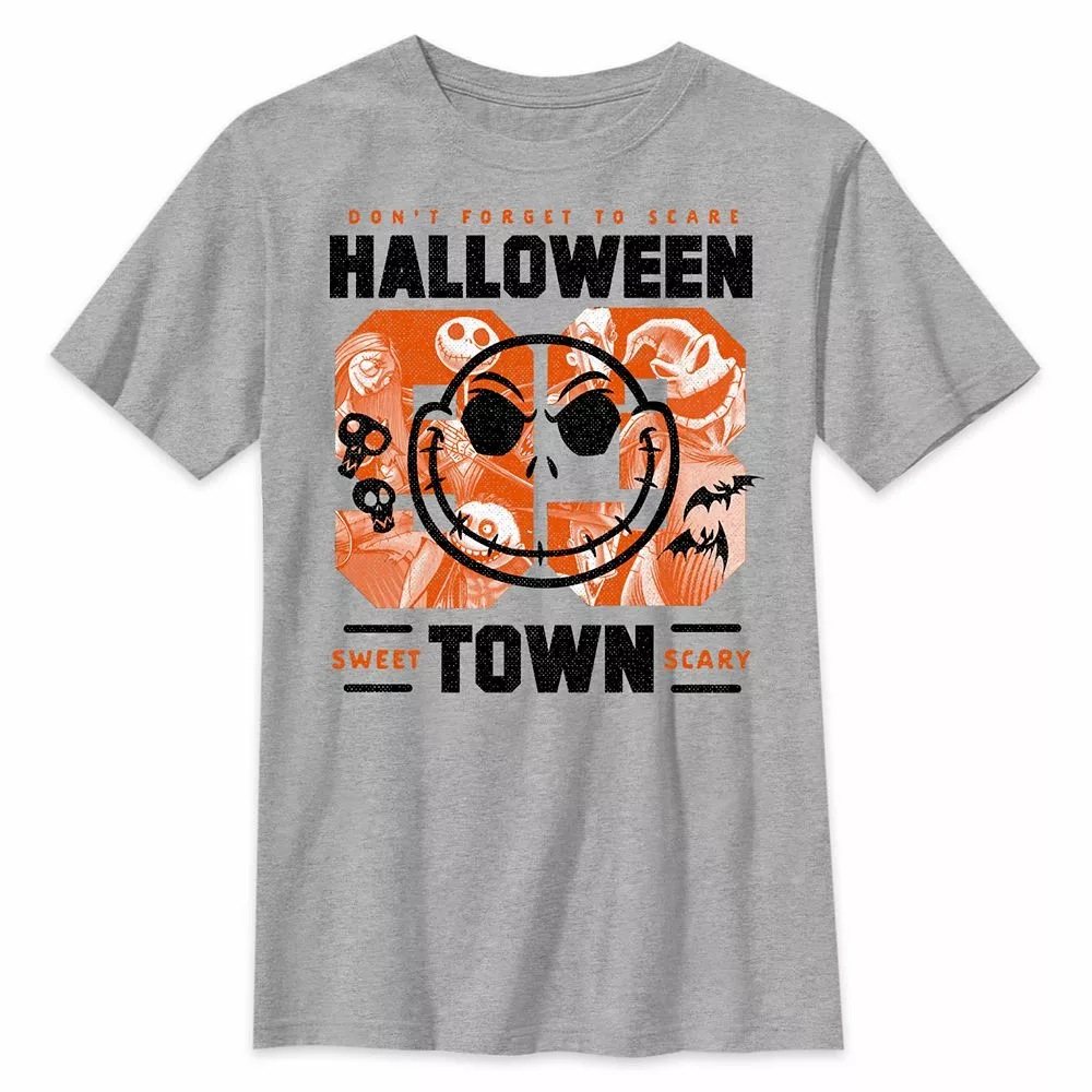 What’s this? What’s this? Jack Skellington reminds passers-by ”Don’t forget to Scare” on this heathered souvenir tee from Halloween Town.
