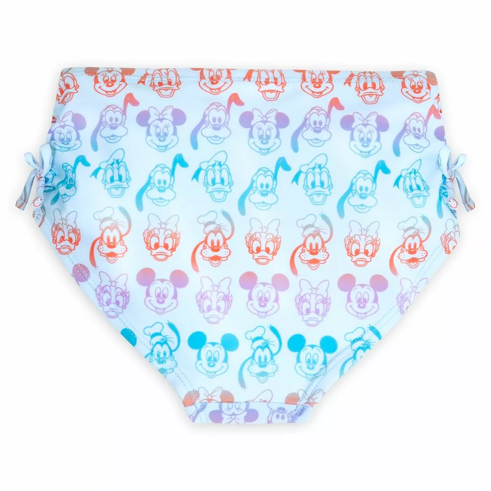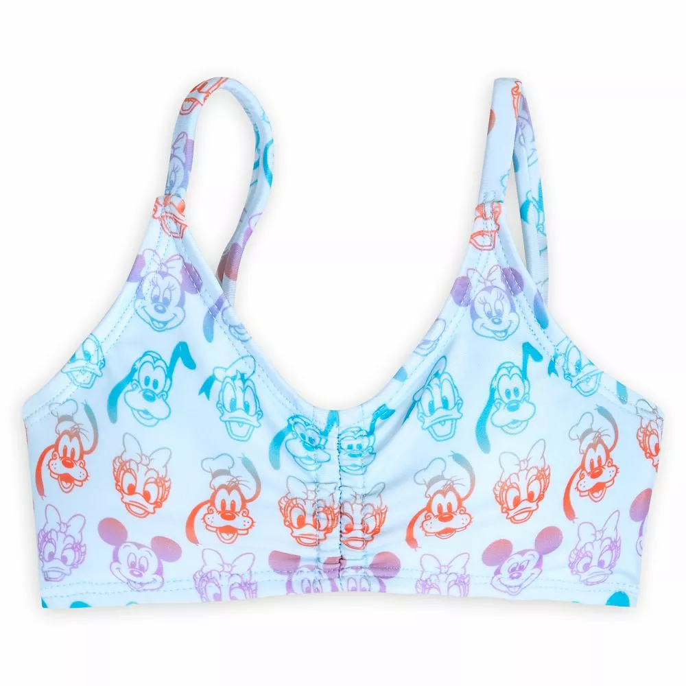 Great style meets the best of pals with this Mickey Mouse and Friends two-piece swimsuit. Mickey, Minnie Mouse, Donald Duck, Daisy Duck, Goofy and Pluto are all smiles in the fun and colorful allover pattern. The cinched top and the UPF 50+ built-in UV protection makes it the cutest, smartest bikini on the beach.