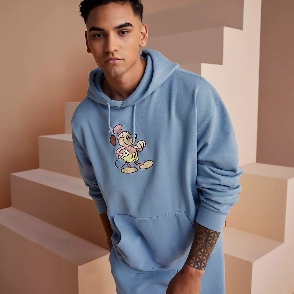 While Mickey’s appeal is timeless, his appearance is given a contemporary twist on this soft pullover hoodie. The main character mouse’s classic standing pose have been reimagined in pastel colors on the front of this luxuriously heavyweight hoodie that’s part of the Mickey and Friends Genuine Mousewear collection.