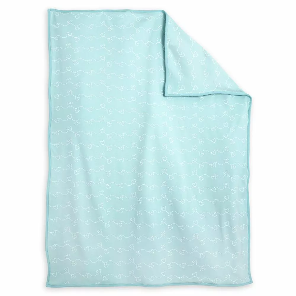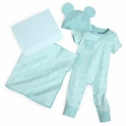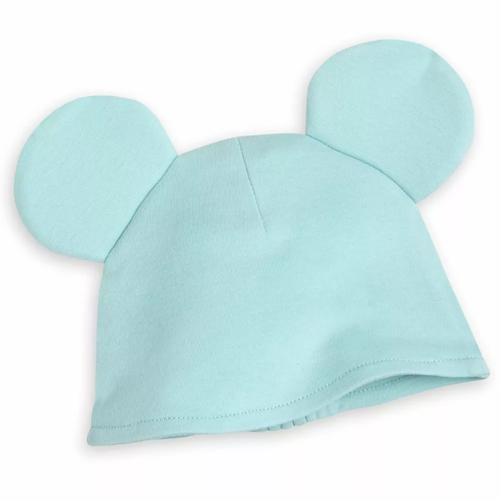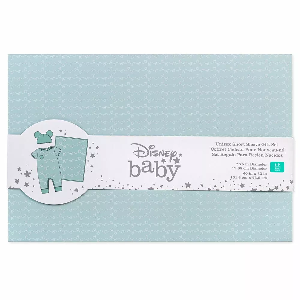 Your little one will be covered in little Mickeys with this coordinated gift set for baby. The short sleeve bodysuit and blanket feature an allover print of wavy lines hung with Mickey icons while the final part of the three-piece set is a matching beanie with Mickey ears!