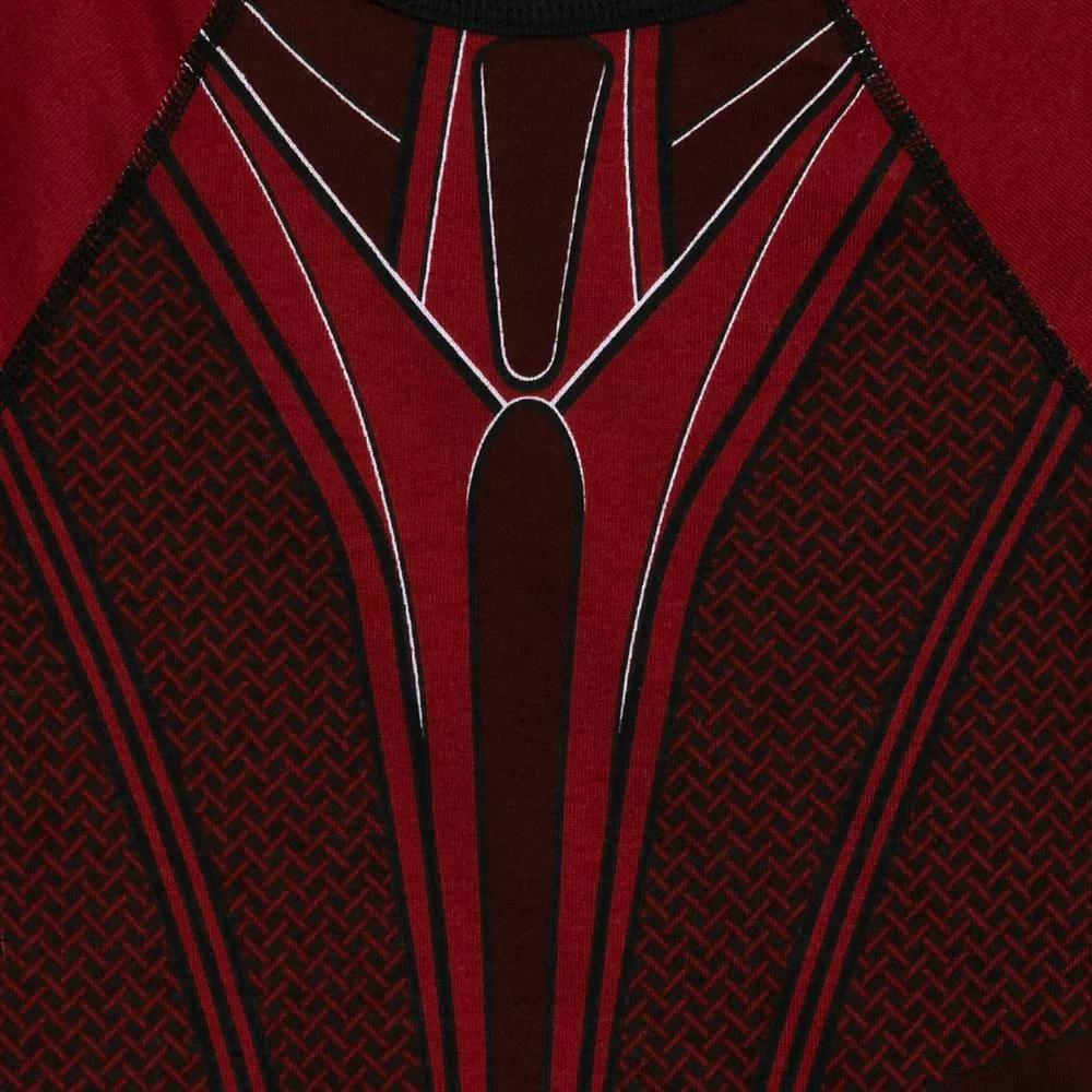 A good night’s sleep will transform any average kid into a mighty Marvel super hero when wearing this soft pajama set featuring an allover Scarlet Witch costume print.
