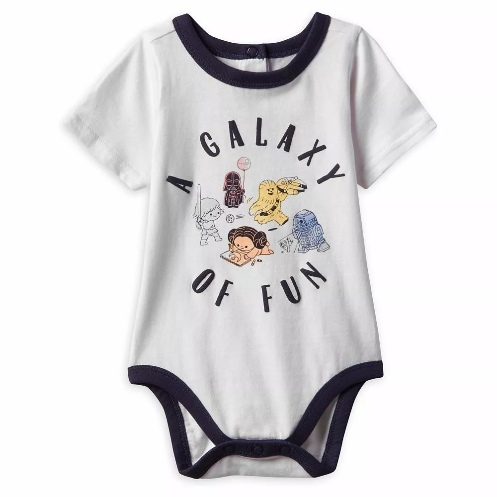 Choose their path wisely and clothe your youngling in this soft all-cotton bodysuit with its promise of ”A galaxy of fun”. Darth Vader and Chewbacca are among the cast of Star Wars: A NewΒ HopeΒ who are feeling like kids again for a gleeful galactic design.
