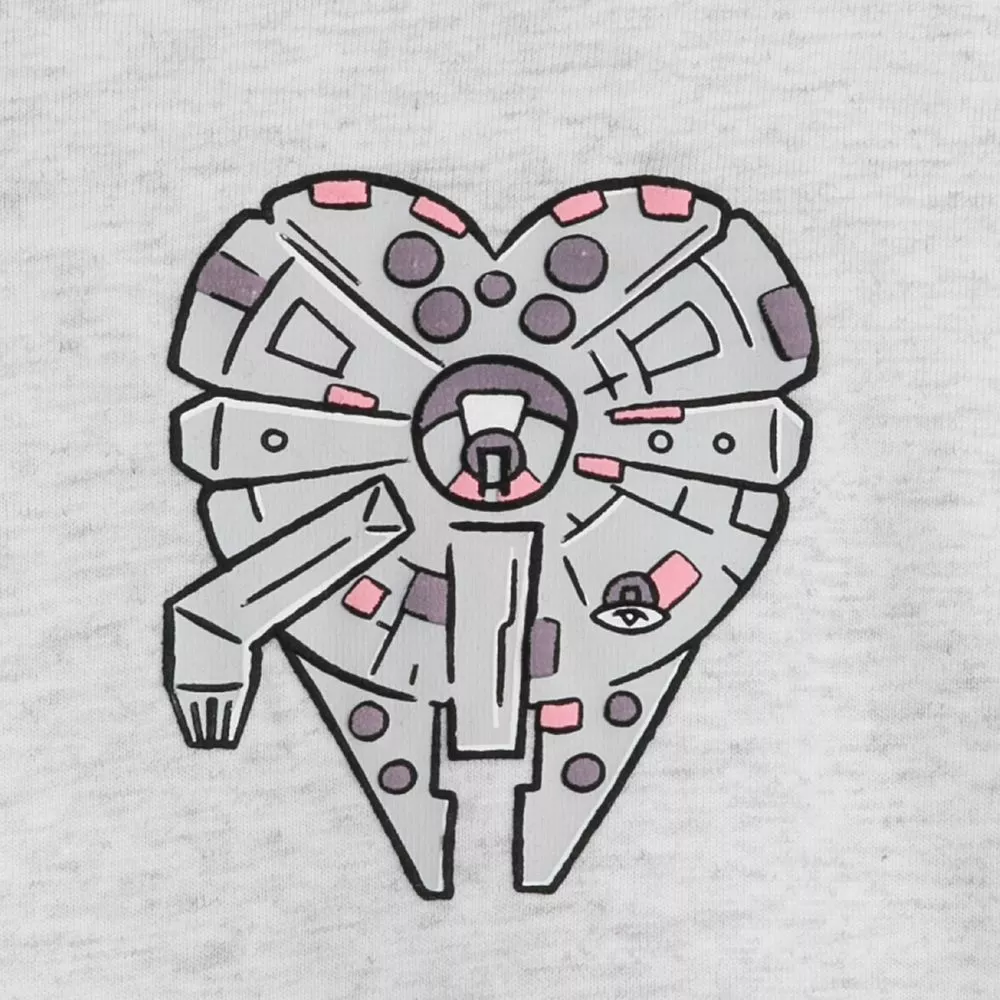 - Puffy ink heart-shaped Millennium Falcon on chest