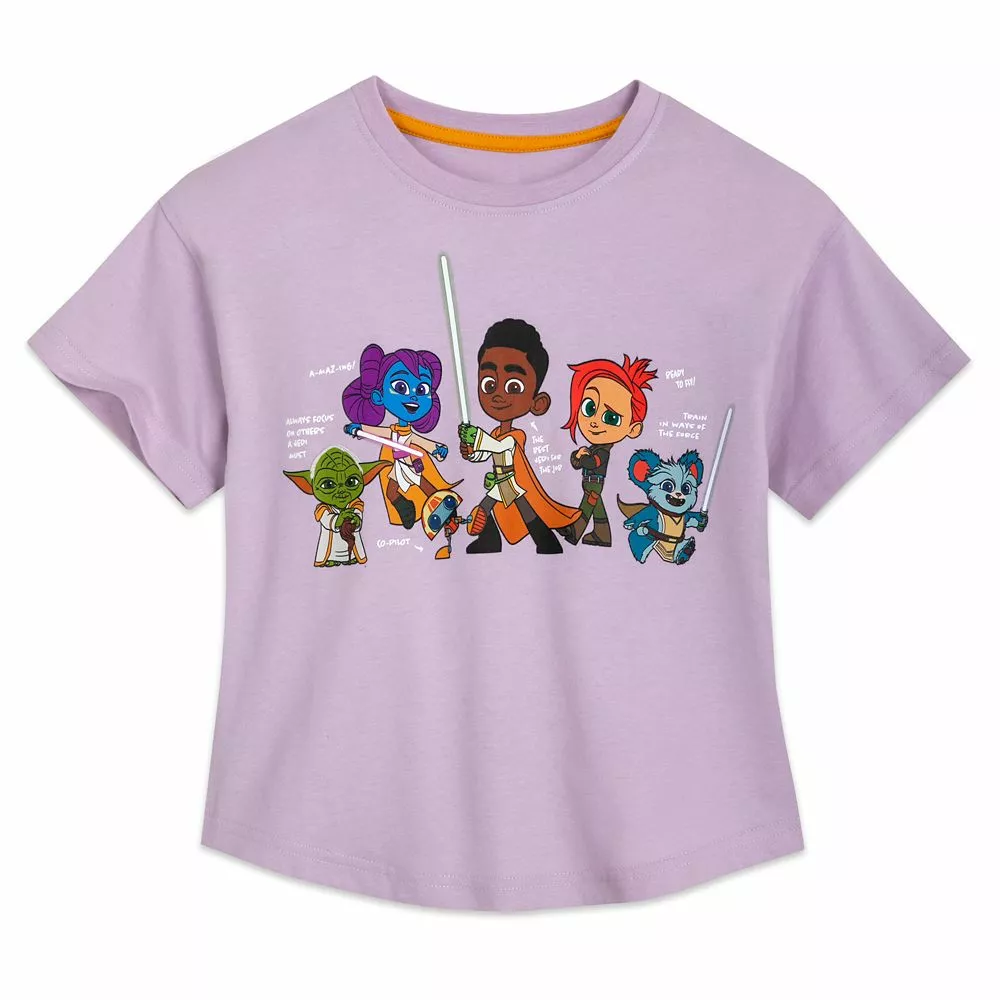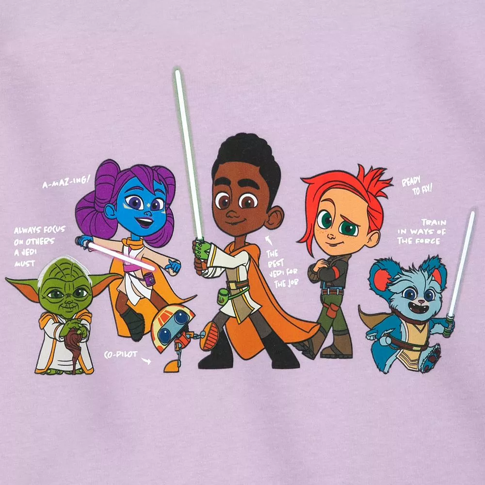The characters from Star Wars: Young Jedi Adventures are ready to face their next exciting . . . er, adventure as they team up on the front of this t-shirt. Yoda, Lys Solay and Kai Brightstar are among those pictured on this soft heathered tee with shirttail hem.