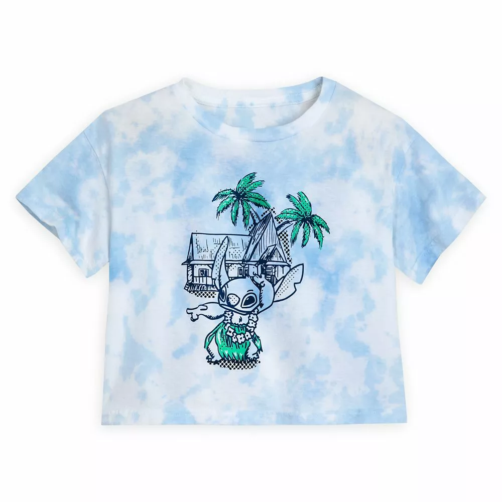 Say ”aloha” to Stitch as he shows off his hula dancing moves on this sensory friendly tie-dye tee with plenty of island style.