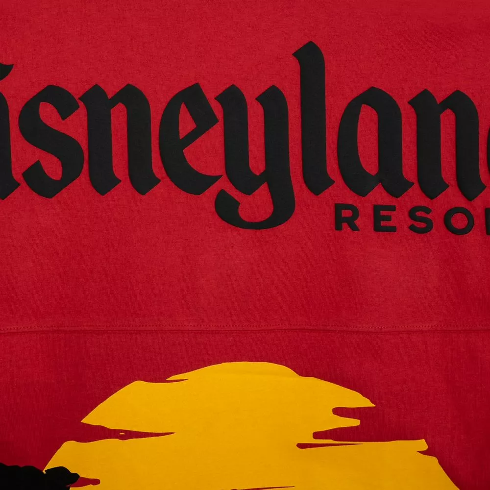 Express a worry free philosophy in this souvenir Spirit Jersey inspired by Disney’s The Lion King, featuring the ”Hakuna Matata” crew and puffy Disneyland logo on back. Sunset graphics and silhouettes are set against a brilliant red fabric.