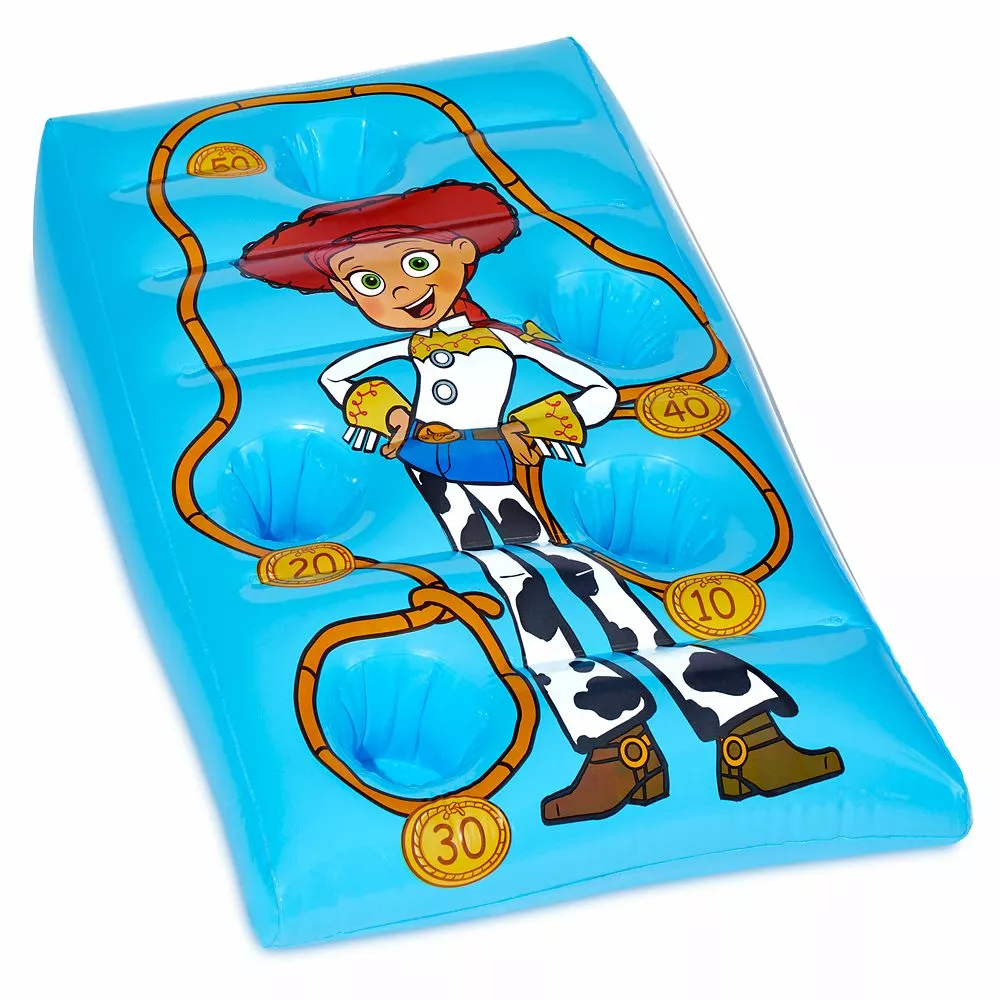 Jessie will bring a little giddyap to pool time with this inflatable 2 in 1 toss game. Toy Story‘s yodeling cowgirl is surrounded by scoring pockets into which players throw colorful inflatable bags. Or, to double the fun, they can place stoppers in the pockets and try and toss rings over the animal characters!