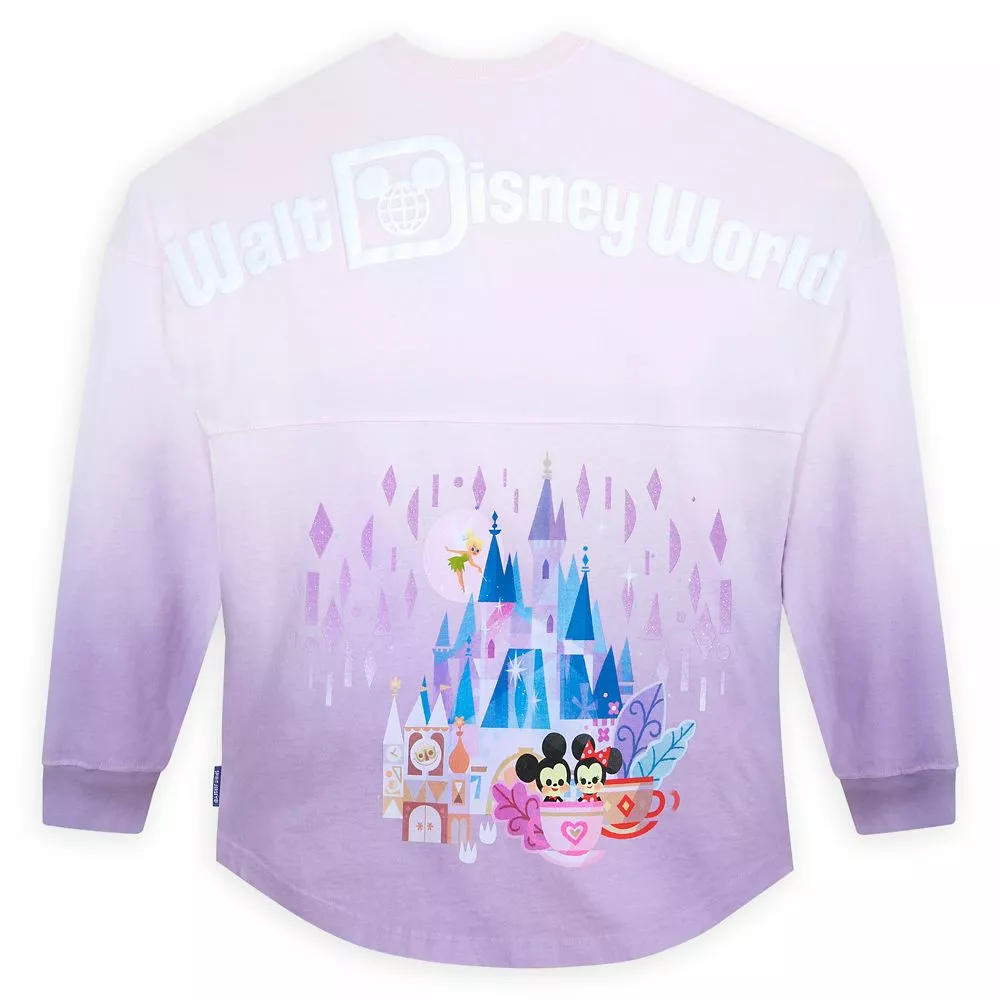 Join Mickey and Minnie for a dizzying spin on a mad teacup with this Walt Disney World pullover Spirit Jersey illustrated by Joey Chou and featuring a subtle ombre wash. Tinker Bell and Dumbo make daring flights over the Magic Kingdom and the Cheshire Cat leaves a grin behind on this colorful cotton top that’s part of the artist’s adorable collection for Disney Parks.